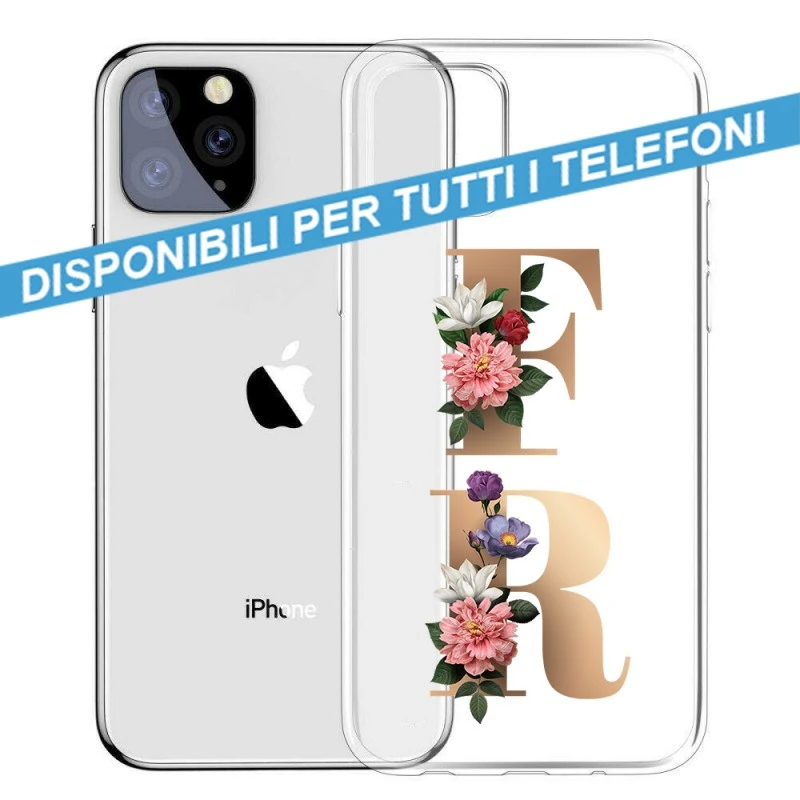 COVER TRASPARENTE INIZIALI FIORI FLOWERS 1 Per APPLE IPHONE SAMSUNG GALAXY HUAWEI ASUS LG ALCATEL WIKO XIAOMI