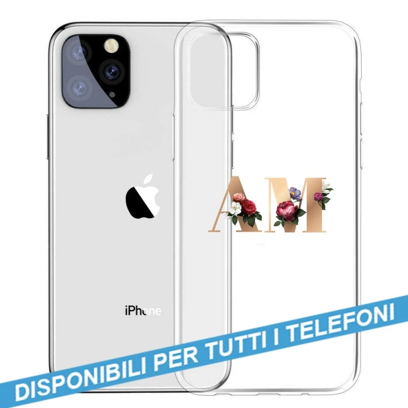 COVER TRASPARENTE INIZIALI FIORI FLOWERS 3 Per APPLE IPHONE SAMSUNG GALAXY HUAWEI ASUS LG ALCATEL WIKO XIAOMI