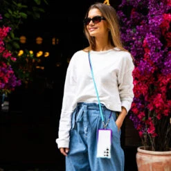Además de su aspecto estiloso, nuestros accesorios también son prácticos. Puedes colgar tu móvil en tu bolso, mochila o incluso en tu llavero, manteniéndolo siempre a mano.